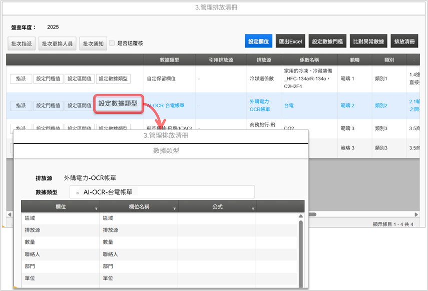 如何在管理排放清冊新增及上傳運輸類數據類型[AI OCR-台電帳單]