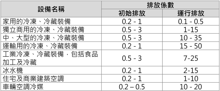 * 初始排放(Initial Emission) : 設備初次被充填冷媒,或組裝階段所產生的冷媒逸散排放