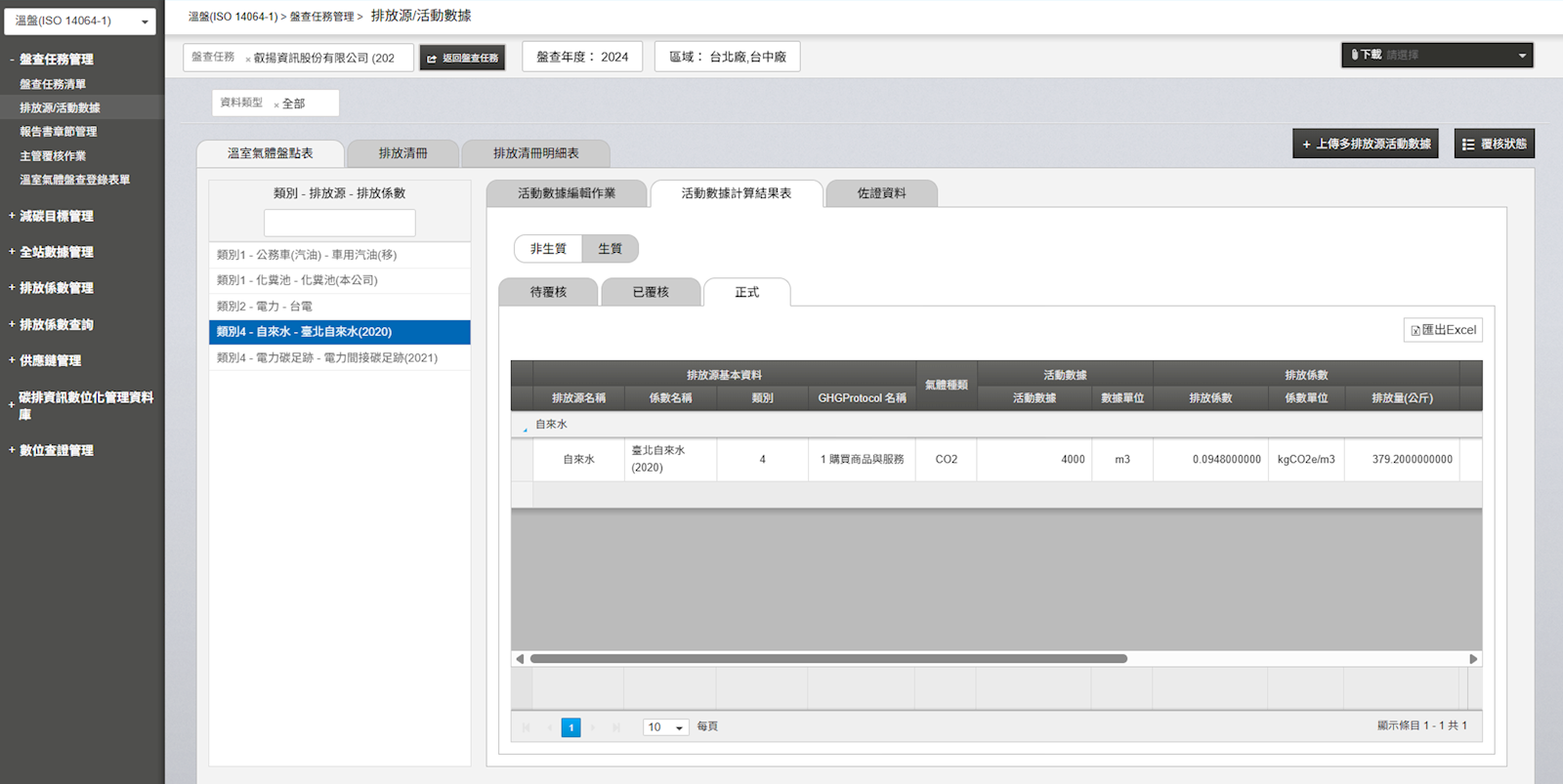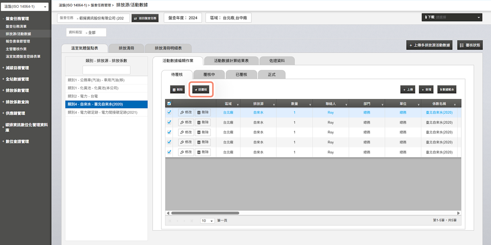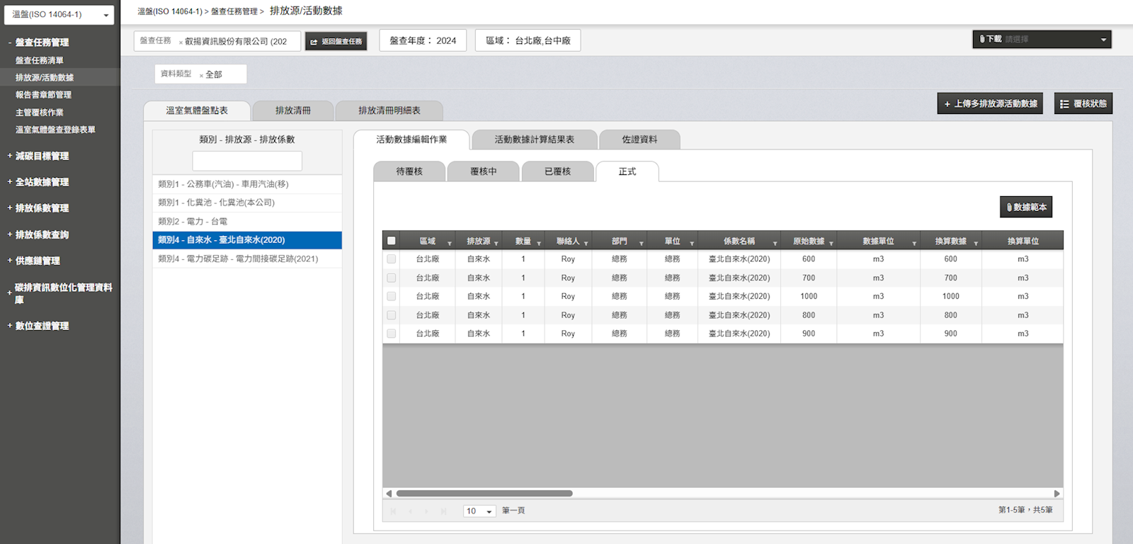 - 強制決行:數據審核流程依序為「一線人員」、「碳管理師」,最後進入排放清冊