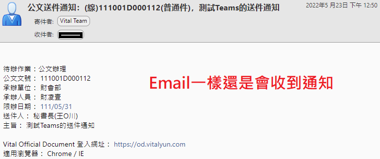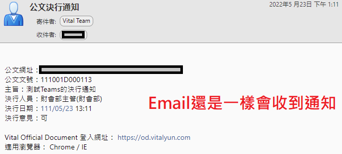 送件通知及決行通知,可透過 Microsoft Teams 接收訊息,操作方式請參考FAQ。