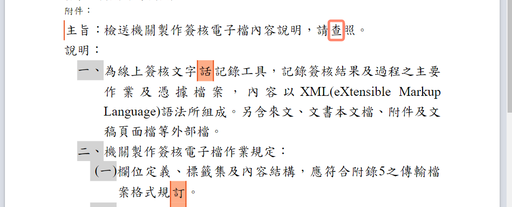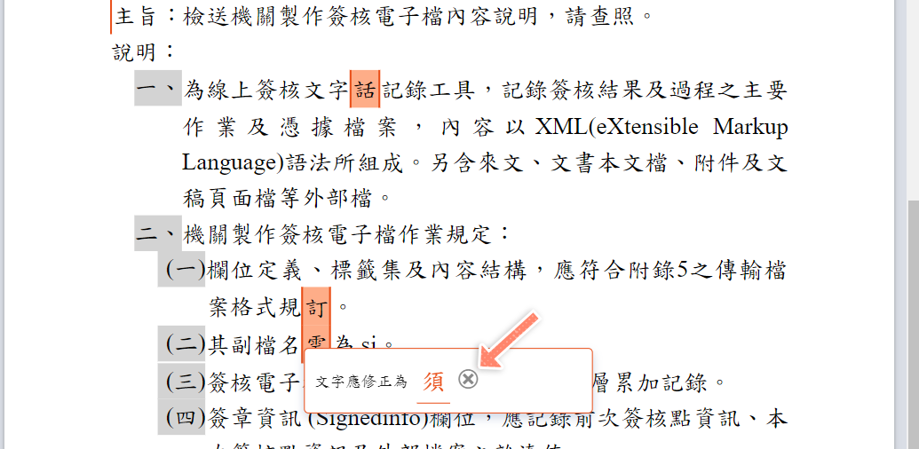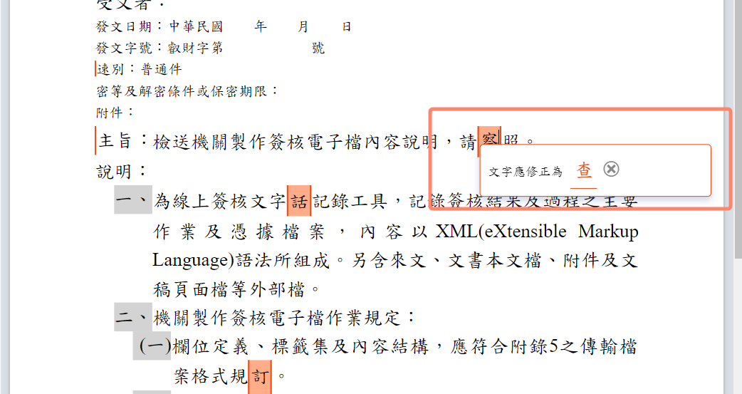 • 提供獨家的 AI 詞彙校正(Spell Check)功能,即時為公文進行糾錯及校正。