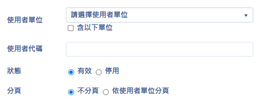 建議機關內人員較多時,可選擇「使用者單位」,然後再做搜尋