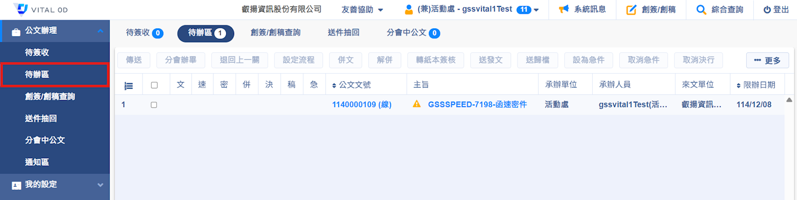 5.承辦人的「待辦區」即會顯示該篇公文。