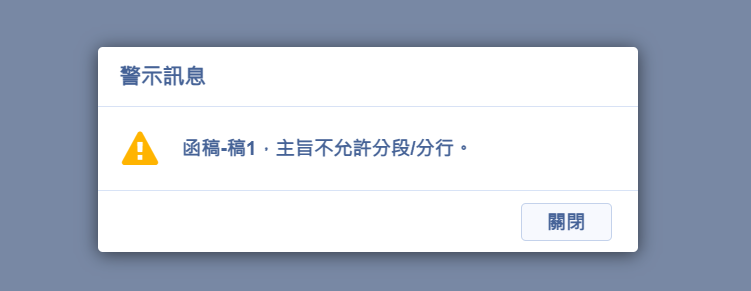 為什麼存檔時會出現主旨不允許分段/分行的錯誤訊息?